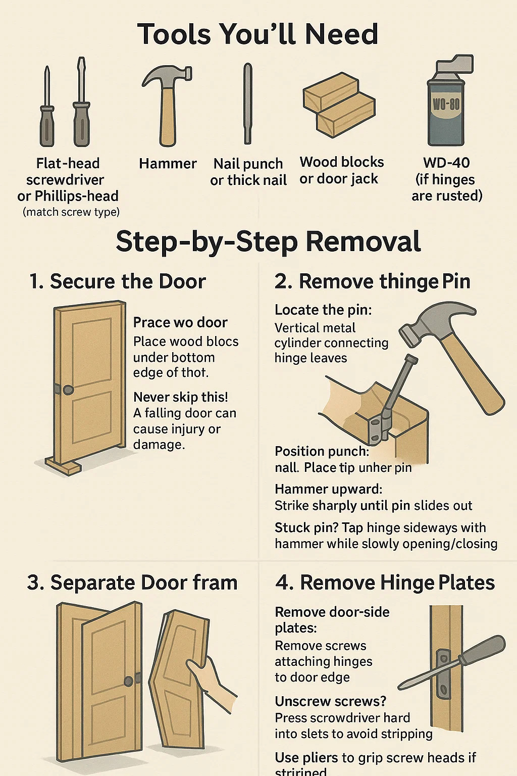 Uklonite vijke koji pričvršćuju šarke na okvir vrata.