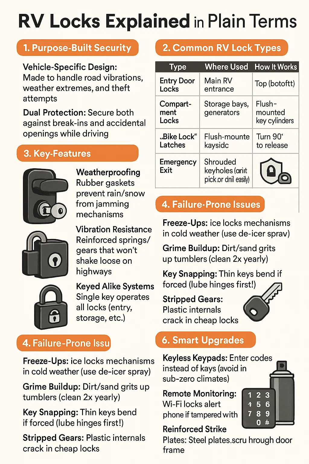 Brave za ulazna vrata Glavni ulaz za kamp vozila Kombinacija zasuna s ključem; često dvostruko pričvršćen (gore/dolje)