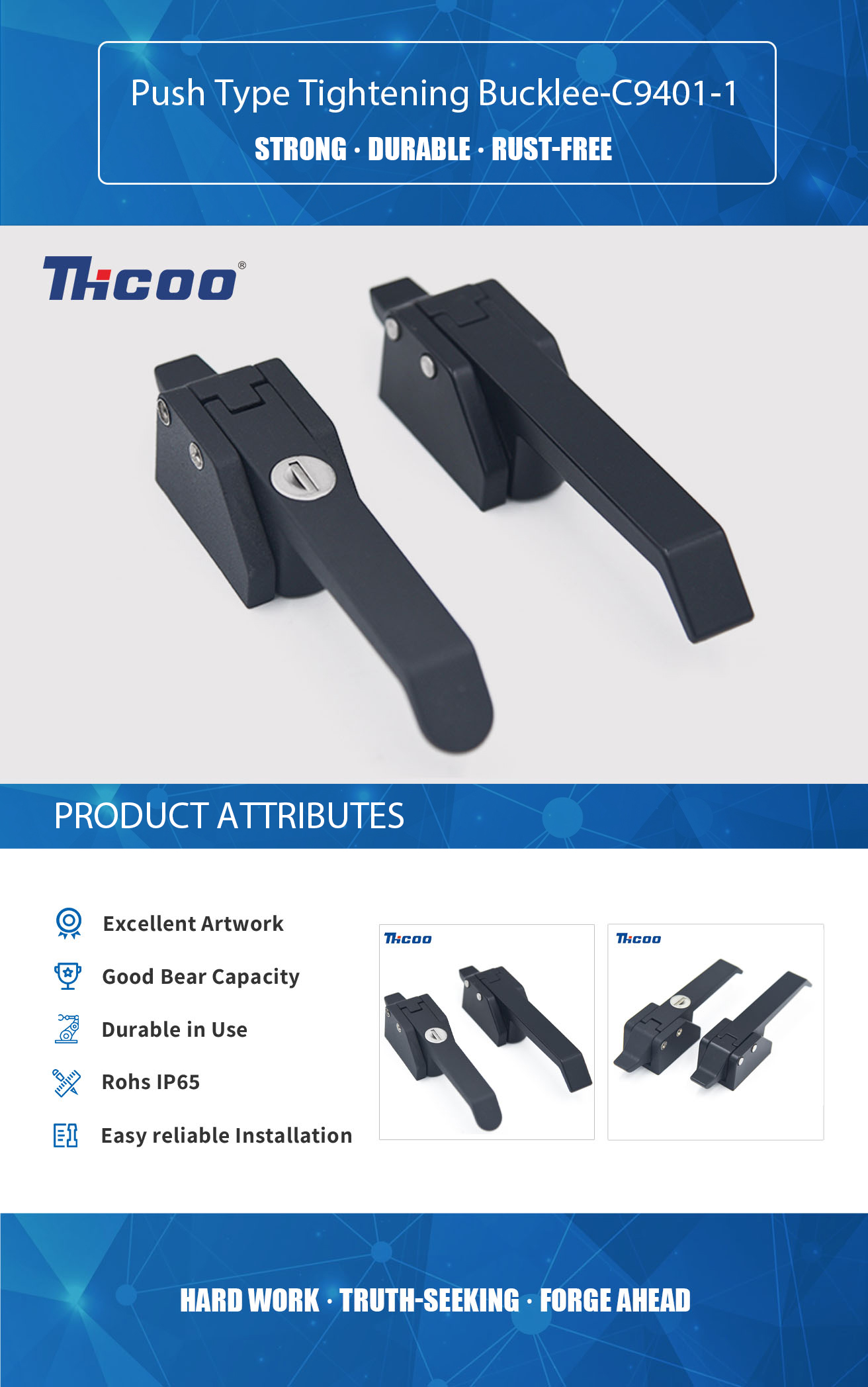 Imamo vlastiti laboratorij za testiranje i naprednu i kompletnu opremu za inspekciju, koja može osigurati kvalitetu proizvoda. Kopča za zatezanje na pritisak-C9401-1 je vrsta kopče koja koristi mehanizam za pričvršćivanje i osiguranje predmeta. Zatezanje na pritisak kopče se mogu koristiti u različitim primjenama gdje je potrebno sigurno držanje, kao što je pričvršćivanje vrata, prozora ili ormara ili za pričvršćivanje predmeta u vozilu ili drugom zatvorenom prostoru.