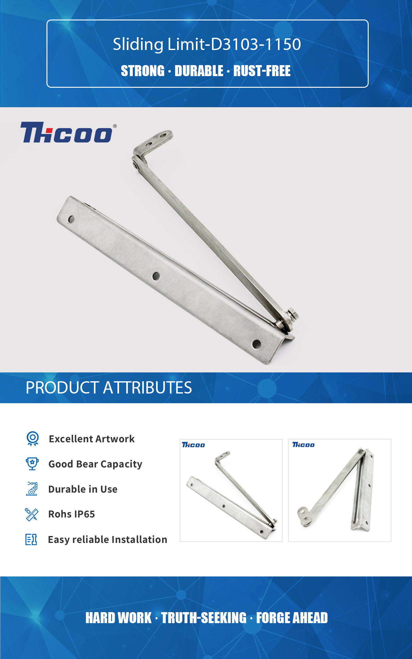 Imamo vlastiti laboratorij za testiranje i naprednu i kompletnu opremu za inspekciju, koja može osigurati kvalitetu proizvoda. Klizna granica-D3103-1150 je vrsta mehaničkog uređaja koji se koristi za ograničavanje kretanja objekta unutar određenog raspona ili na određeni položaj. Sastoji se od kliznog elementa koji se može pomicati duž tračnice ili vodilice i mehanizma koji ograničava kretanje kliznog elementa na određeni raspon.